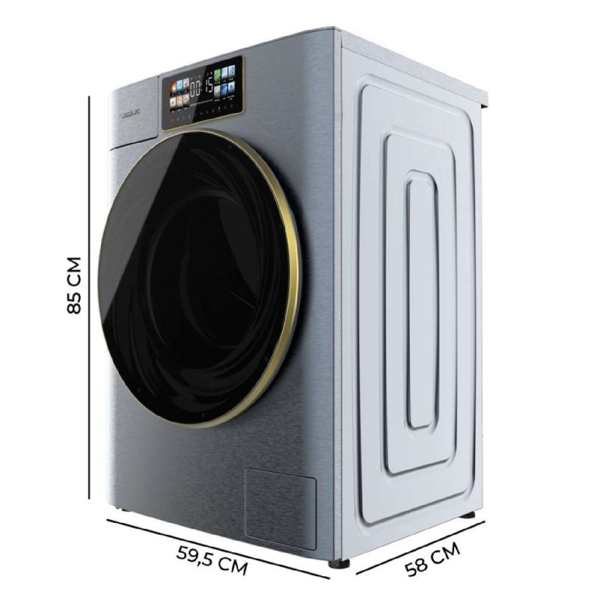 The Cecotec Bolero DressCode 9950 Autodose Inverter 3D is an advanced freestanding washing machine designed to deliver efficient, versatile, and high-tech laundry care for the modern home. With a 9 kg capacity, it handles large loads in a single cycle, making it ideal for families or users looking to reduce wash frequency. Its powerful energy rating A ensures minimal electricity consumption, supporting savings and environmental care. Equipped with the Inverter Plus Motor, it offers quiet and stable operation while reducing energy use by up to 50% compared to conventional motors—especially valued during spin cycles and night washes thanks to the Smooth Wash function, which automatically calibrates the drum for ultra-quiet performance. The innovative Autodose system provides automatic detergent dosing, adjustable in five levels to optimize cleaning without waste. SteamMax and Sanitize technologies use steam during washing to sanitize and remove bacteria and odors, making them especially useful for delicate garments or children's clothes. Among its 13 specialized programs, there are options for all fabric types, allowing precise customization for every wash. The 9.2" XXL color touchscreen Core Matrix Screen and compact Core Body design enhance usability and integration in any space, while the 52 cm XXL door makes loading and unloading even bulky items easy. Other valuable features include drum interior light, antibacterial gasket, process indicator bar for easy cycle tracking, and the handy Stop&Go function to pause the cycle and add forgotten items. Smart options like OnSmart and Fuzzy Logic detect the load, optimizing resources and wash time. The ice blue finish adds a distinctive and elegant touch, combining technology, hygiene, and sophisticated design in one appliance. This washing machine stands out as a high-performance, reliable solution for those seeking efficiency, flexibility, and maximum garment protection every day.