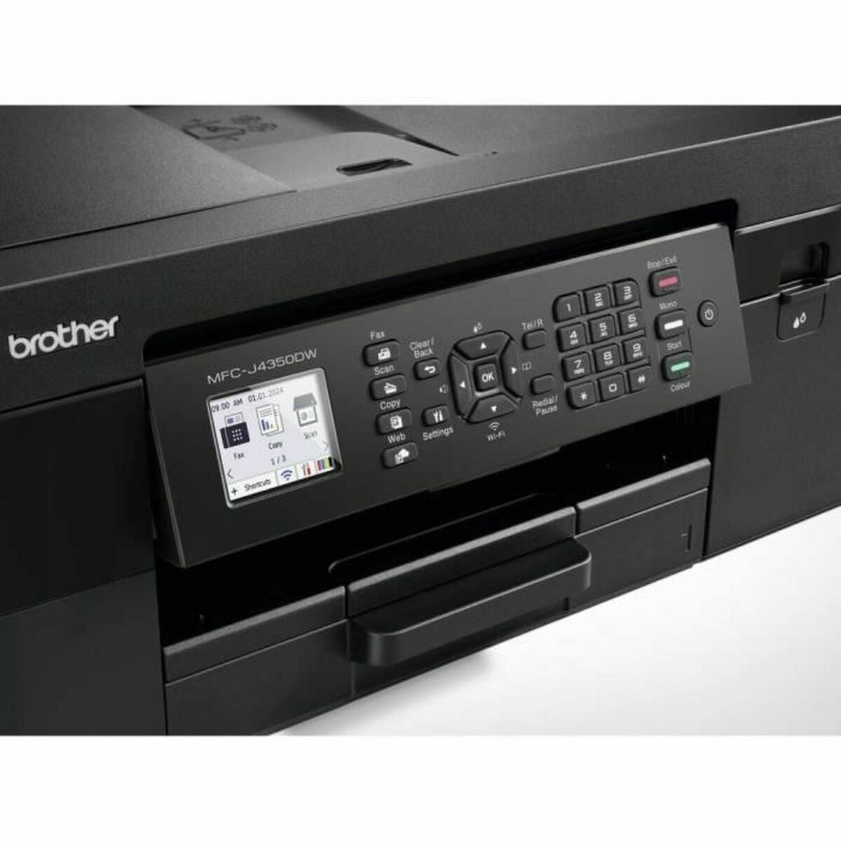 The Brother MFCJ4350DWRE1 multifunction printer is a versatile and efficient solution designed for both home and professional environments seeking advanced features in a single compact device. It incorporates high-precision inkjet printing technology, capable of reaching a resolution of up to 1200 x 4800 dpi, delivering sharp text and quality photos. Its impressive print speed is 20 pages per minute in mono and 19 in color single-sided, with automatic duplex printing to optimize resources and productivity. User experience is enhanced by a 4.5 cm color LCD screen and intuitive control panel, making it easy to navigate its multiple functions: print, copy, scan, and fax, all from one device. The scanning system uses a CIS sensor and supports both color and black-and-white documents with high color depth and maximum resolutions up to 19200 x 19200 dpi (interpolated). It also features dual wireless connectivity (2.4 GHz and 5 GHz), Wi-Fi Direct support, and broad compatibility with mobile printing solutions such as Brother Mobile Connect, Apple AirPrint, Mopria, and Web Connect, meeting integration needs with smartphones, tablets, and various cloud applications. It supports a variety of paper formats and weights, including A4, A5, envelopes, cards, and 10x15 photo, with an automatic document feeder and a standard 100-sheet tray for efficient handling of large workloads. The integrated fax offers PC send/receive, automatic reduction, and memory transmission functions. Its high-yield cartridges allow printing up to 3,000 pages in black and 2,000 in color depending on the selected consumable, helping to reduce cost per page. Includes installation guide and manufacturer’s warranty for added peace of mind. With compact dimensions (440 x 357 x 180 mm) and a weight of 8.9 kg, the Brother MFCJ4350DWRE1 stands out as a balanced multifunction printer, ideal for those who value advanced connectivity, print quality, and versatility in everyday document management.