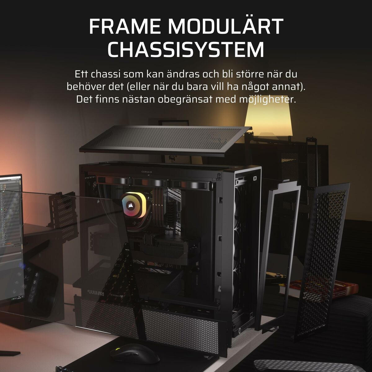 The Corsair ATX Mid-Tower Case FRAME 4000D RS is designed for gaming PC users and workstations that need a sturdy and functional chassis. It features a black frame with a tempered glass side panel to showcase the interior, ideal for RGB lighting or custom components. This Midi-Tower case supports ATX motherboards and offers ample space for component installation, ensuring good airflow management and thermal optimization thanks to its internal design. Key features include an accessible power button and dedicated support for storage drives, including bays prepared for 2.5” hard drives, facilitating the integration of SSDs that provide speed and system stability. Its design is practical and aimed at quick assembly, perfect for gaming setups that balance aesthetics and thermal performance. Overall, this mid-tower case combines solid construction with practical details to provide a reliable and versatile foundation for any high-performance system.
