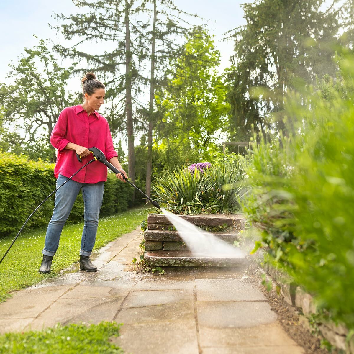 The K7 PREMIUM from Kärcher is a high-performance pressure washer that combines power and functionality for effective cleaning of outdoor surfaces. Its distinctive yellow color provides visibility and immediate recognition, while its corded electric power supply ensures a constant energy flow during use. With a maximum pressure of 180 bar, this pressure washer effectively removes ingrained dirt, mold, and dust residues, ideal for façades, vehicles, patios, and urban furniture. It features a built-in cable reel for convenient storage of the power cord, contributing to a tidier and safer handling of the equipment. Additionally, it includes a 5-meter cable that facilitates mobility without the need for extensions and operates at a frequency of 50 Hz. Among its technological features is a built-in display that can provide relevant information about the device’s status or settings, and Bluetooth connectivity to facilitate management or control via compatible devices. This combination of attributes makes the Kärcher K7 PREMIUM an efficient and practical tool for domestic or professional users who require a robust pressure washer with a balanced level of power and ease of use. This model represents a versatile and well-designed solution within Kärcher’s range for deep cleaning tasks.